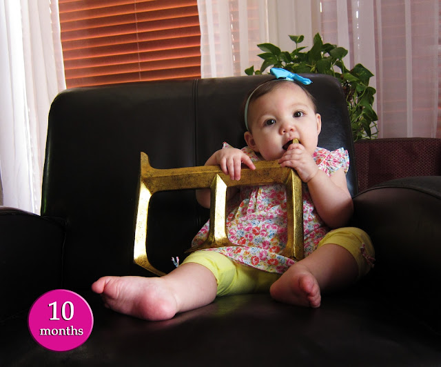 Why is this all happening so fast?! Why is my baby growing faster than my mommy brain can comprehend? I can't hardly keep up with her. She's SOOOO incredibly active now..well MORE active I guess I should say. She's crawling over everything that gets in her way.. getting from point A to point B in one straight shot, regardless of the path or obstacles in her way. You can't keep this baby down, that's for sure...And I can't believe how close we are to a year now! A YEAR?! Seriously? Where the hell is the Pause Button when you need it?! Ahhhhh... !! Make it stop!